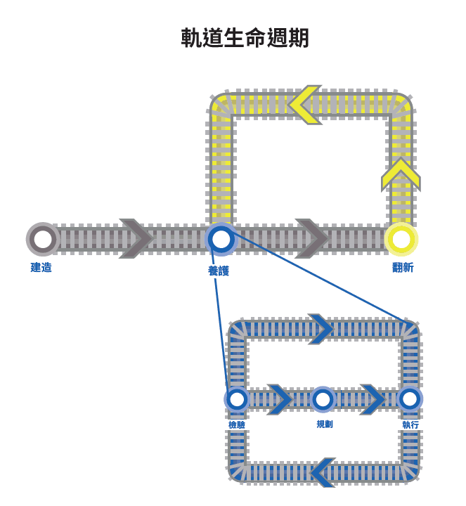 軌道建造 、養護和翻新是顧客實行的重要生命周期活動,以管理極爲關鍵和昂貴的資産,也就是他們的軌道。